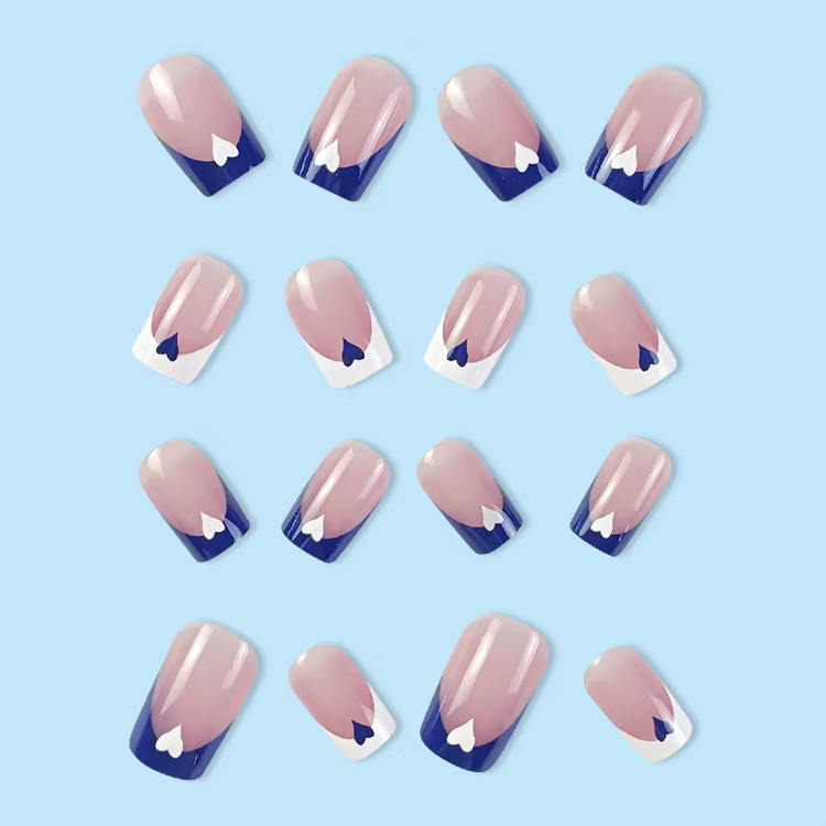 Lovely Love Heart Blue White French Nail Art
